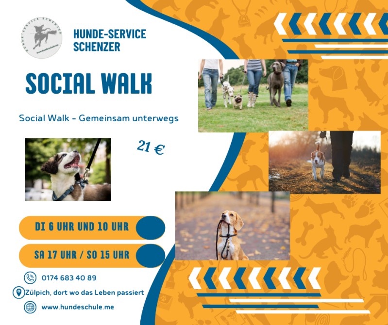 Lass deinen Hund bei unserem Social Walk neue Hundefreundschaften schließen, während wir die Körpersprache analysieren und mögliche Verhaltensprobleme vorbeugen. Systematische Spaziergänge bieten abwechslungsreiche Erlebnisse und helfen deinem Hund, sich sicher und entspannt zu fühlen. Einfaches nebenher laufen oder übermäßiges Training sind oft demotivierend – wir machen Spaziergänge zu einem Highlight!